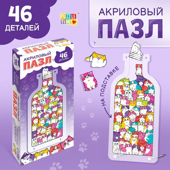 Акриловый пазл «Забавные котики», на подставке, 46 фигурных деталей