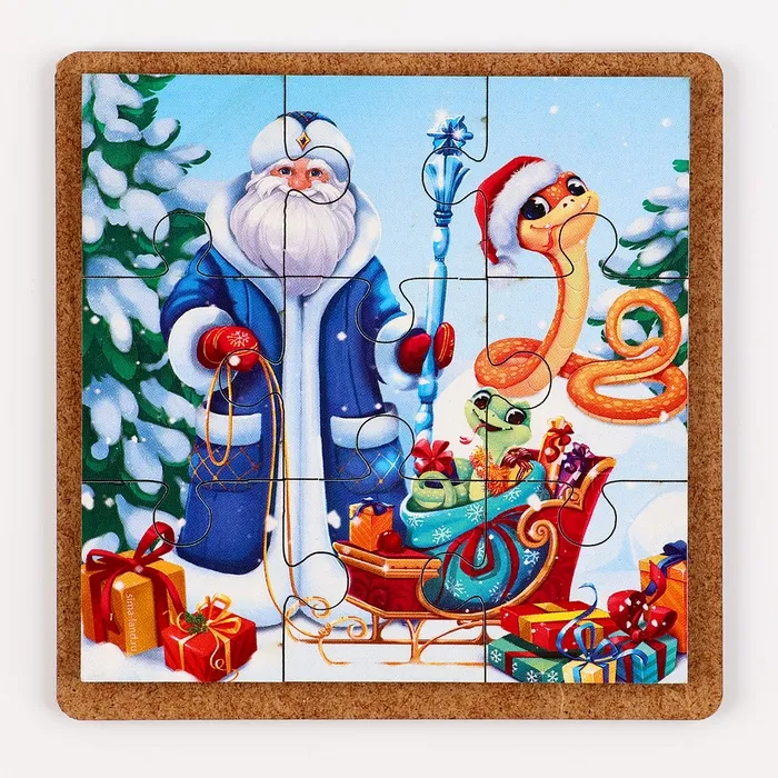 Деревянные пазлы для малышей на новый год «Змея. Сюрприз», 9 элементов, символ 2025