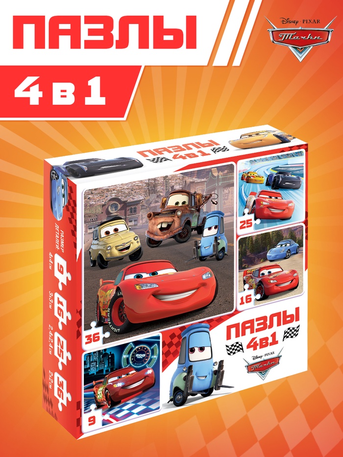 Пазлы 4 в 1 «Ни дня без гонки», Тачки