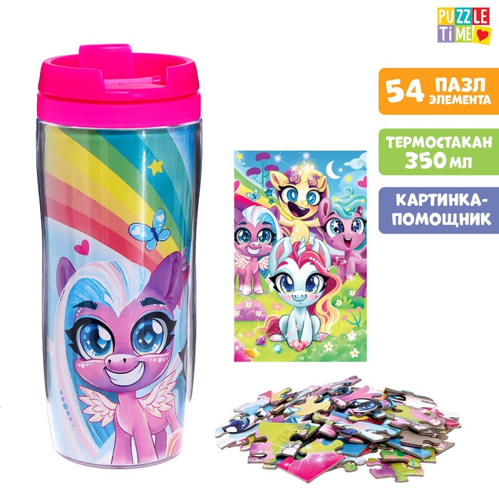 Термостакан детский «Единорожки», с вставкой, 350 мл + пазл 54 элемента