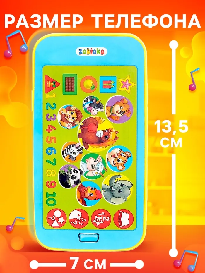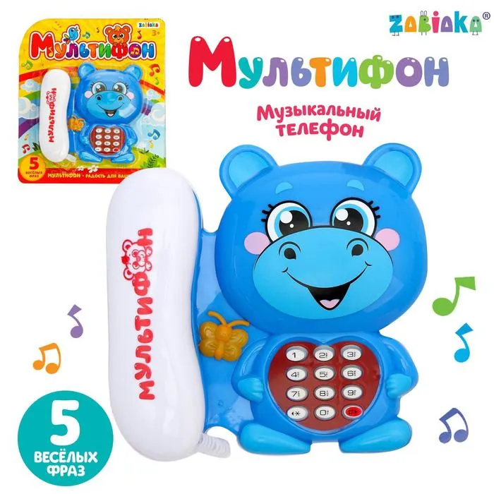 Музыкальный телефон детский «Мультифон: Бегемотик», русская озвучка, работает от батареек, цвет голубой