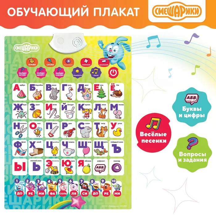 Электронный плакат обучающий «Умная азбука», звуковые эффекты, Смешарики, в пакете