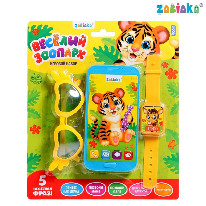 Игровой набор «Зоопарк»: детский телефон, очки, часы, русская озвучка, цвет голубой