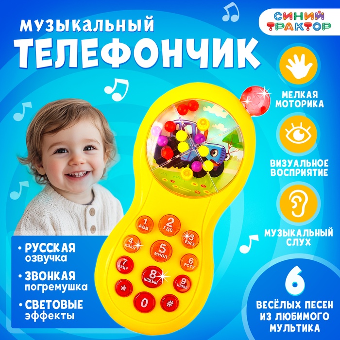 Музыкальный телефончик «Синий трактор», звук, свет, цвет жёлтый