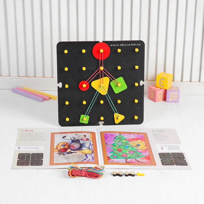 Геоборды представляют собой доски с множеством штырьков, на которые натягиваются резинки, формируя разнообразные фигуры и узоры. Этот процесс способствует развитию мелкой моторики и координации движений, что особенно полезно для детей в возрасте от 3 лет. Геоборды используются как в домашних условиях, так и в образовательных учреждениях.