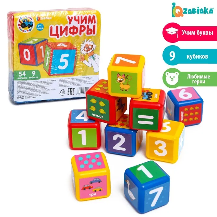Обучающие кубики Синий Трактор «Учим цифры» 9 шт., 40 × 40 мм