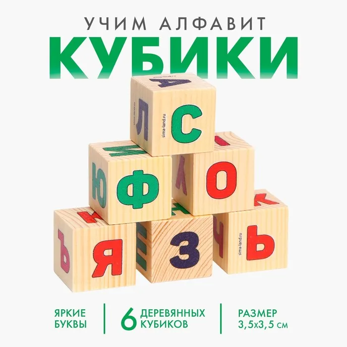Кубики «Изучаем алфавит», 12 штук, по методике Монтессори