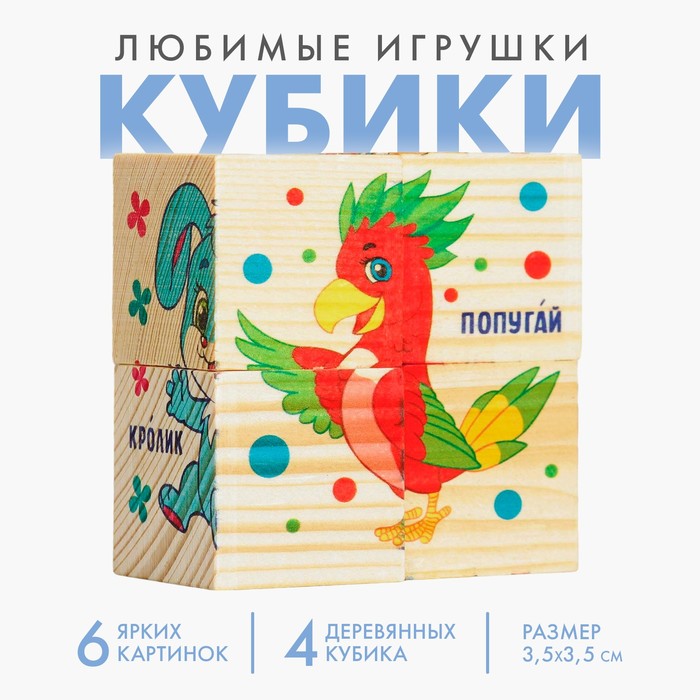 Кубики деревянные «Домашние животные», набор 4 шт.