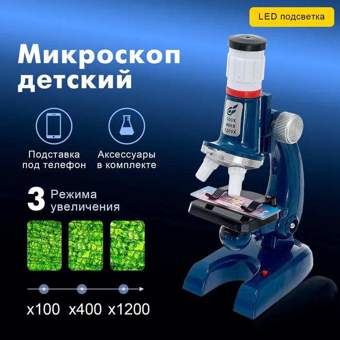 Микроскоп «Юный исследователь», со штативом для смартфона, увеличение х1200