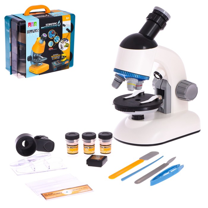 Микроскоп детский «Набор биолога в чемодане» кратность х40, х100, х640, подсветка, цвет белый