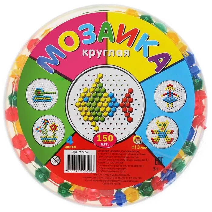 Мозаика магнитная шестигранная, 5 цветов, 125 элементов