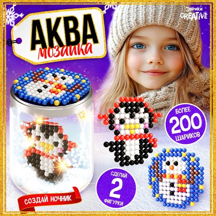 Аквамозаика «Снежная баночка. Пингвинчик», ночник, более 200 шариков