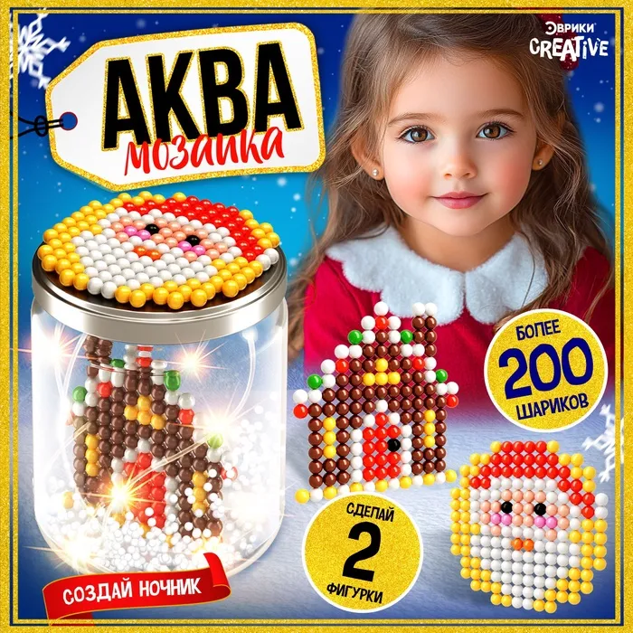 Адвент - календарь новогодний «Аквамозаика», детский, 9 окошек с подарками, 9 карточек, 1000 шариков