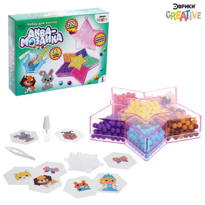 Аквамозаика в контейнере, 720 шариков, 3 фигурки, 1 основа