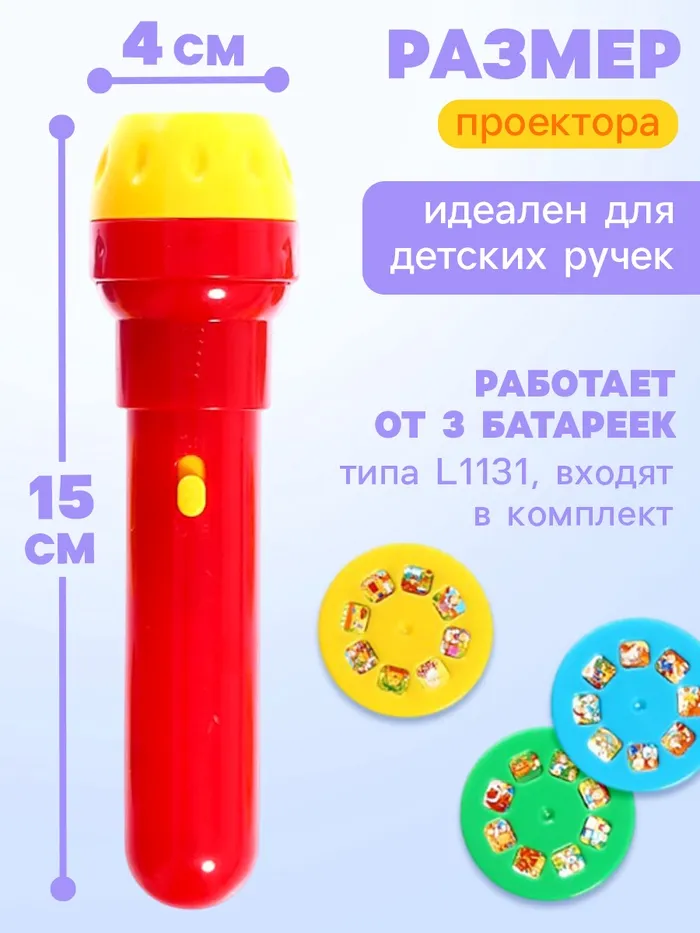 Проектор-фонарик «Волшебные истории», 3 слайда, 24 картинки, цвета МИКС