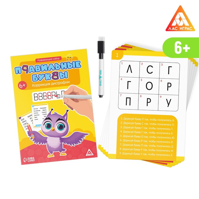 Развивающий набор «Правильные буквы. Коррекция дисграфии», маркер, 20 карточек, 6+