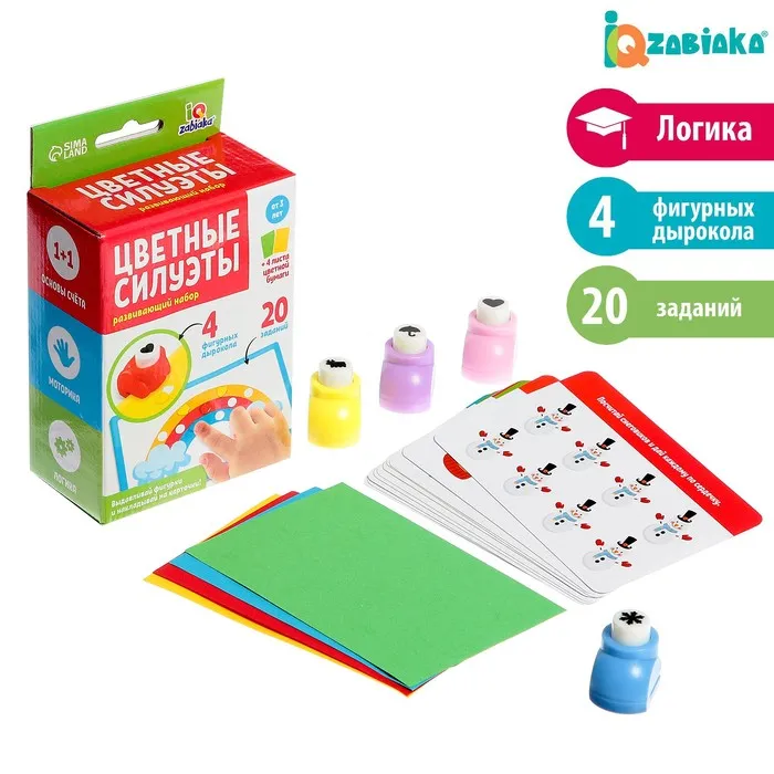 Развивающий набор «Цветные силуэты», 4 фигурных дырокола
