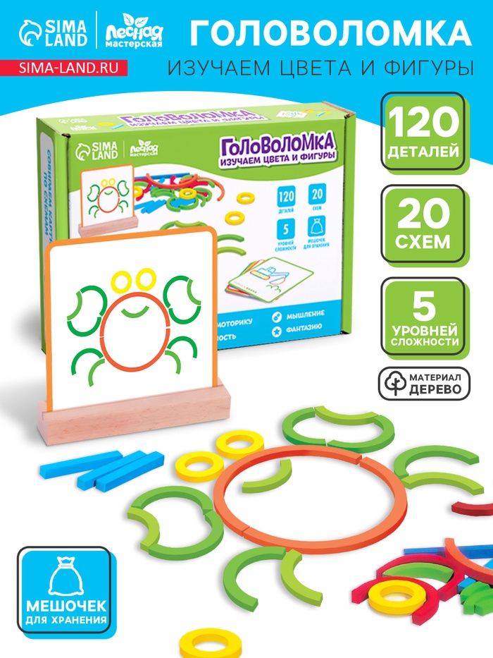Головоломка «Изучаем цвета и фигуры», 120 деталей, 20 схем, 5 уровней