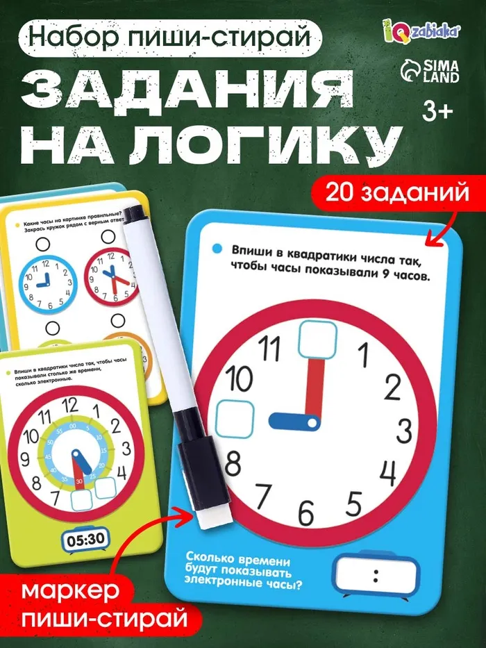 Набор пиши - стирай «Изучаем время», 20 заданий