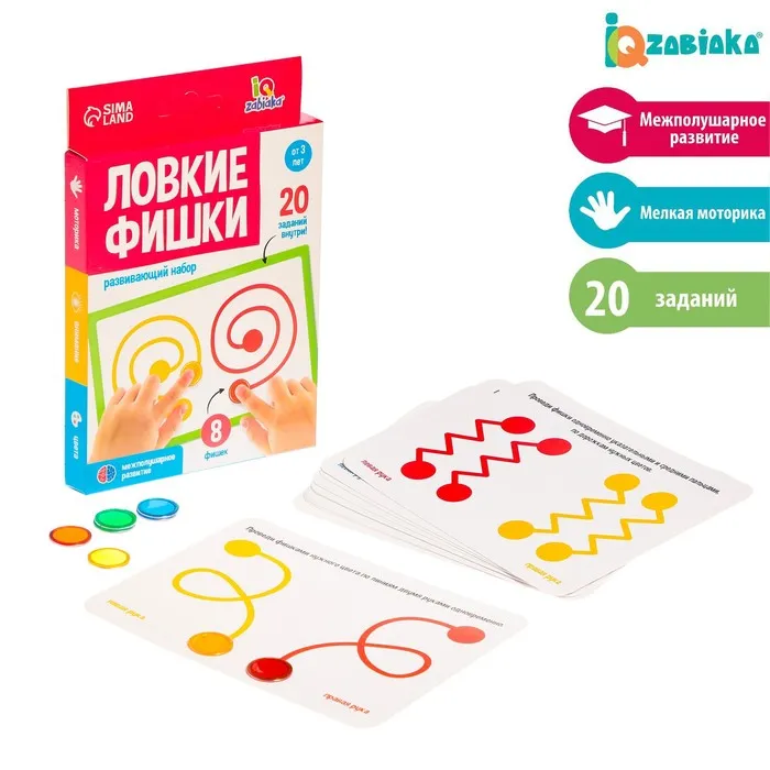 Развивающий набор «Ловкие фишки», межполушарное развитие, 10 карточек, 3+
