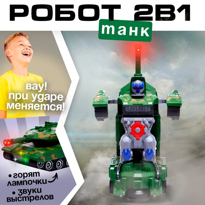 Робот «Танк», трансформируется, световые и звуковые эффекты, работает от батареек