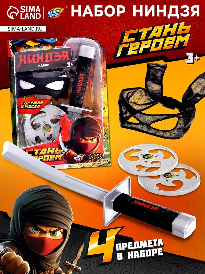 Игровой набор ниндзя «Скрытый воин», 4 предмета