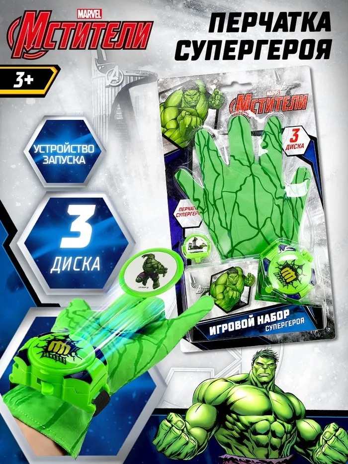 Игровой набор с перчаткой супергероя «Халк», стреляет дисками, 1 устройство запуска