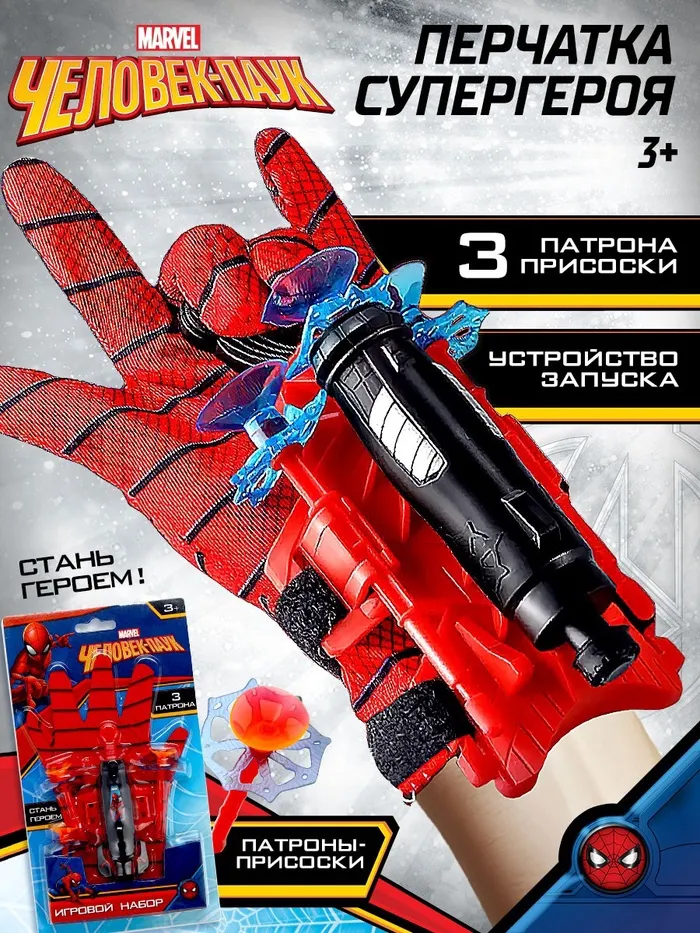 Игровой набор с перчаткой супергероя «Человек-паук», стреляет присосками, 1 устройство запуска