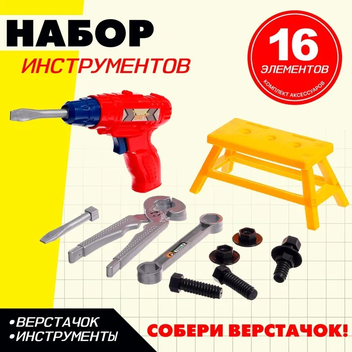 Набор инструментов «Собери верстачок», 16 элементов, цвет МИКС