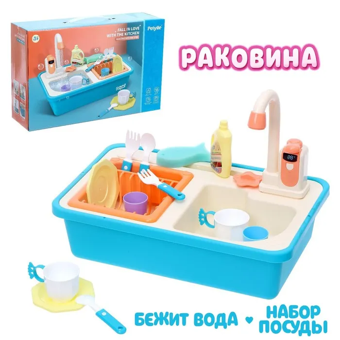 Игровой набор «Раковина» с набором посуды, циркулирует вода