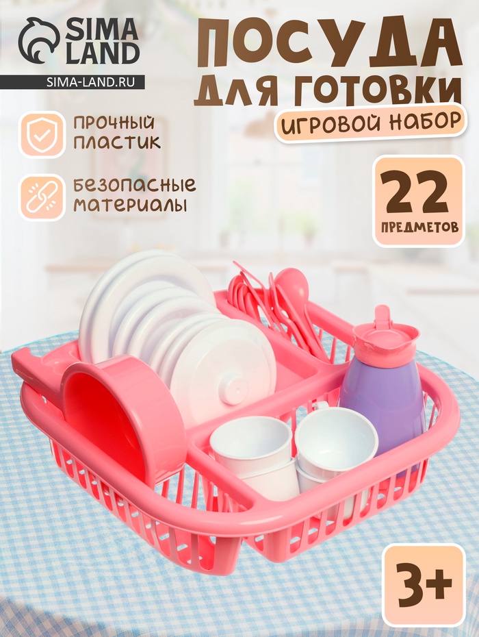 Набор детской посуды с сушилкой на 4 персоны, 22 предмета