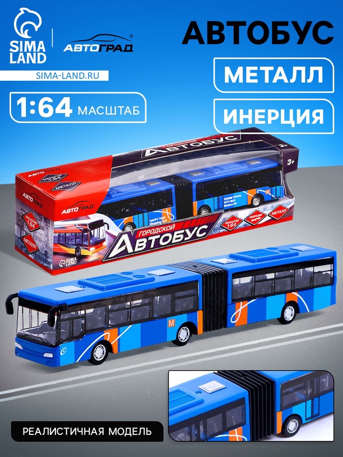 Автобус металлический «Городской транспорт», инерционный, масштаб 1:64, цвет синий