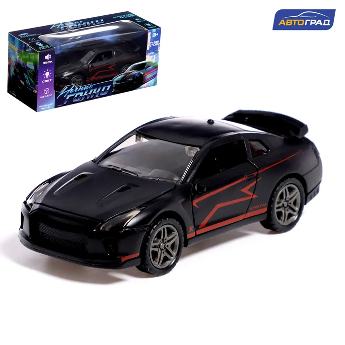 Машинка металлическая «Ночные гонки», инерционная, 1:32, открываются двери, звуковые и световые эффекты, цвет чёрный