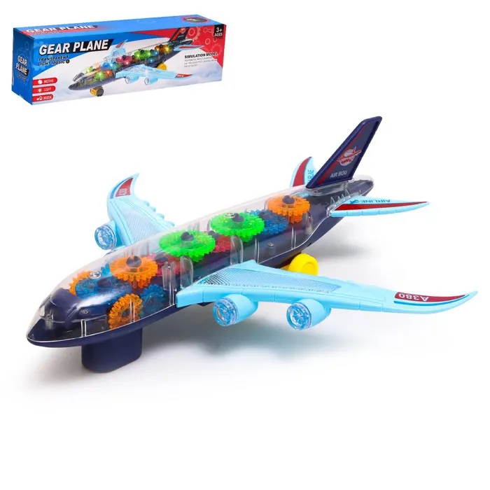 Самолет «Шестерёнки», свет и звук, работает от батареек