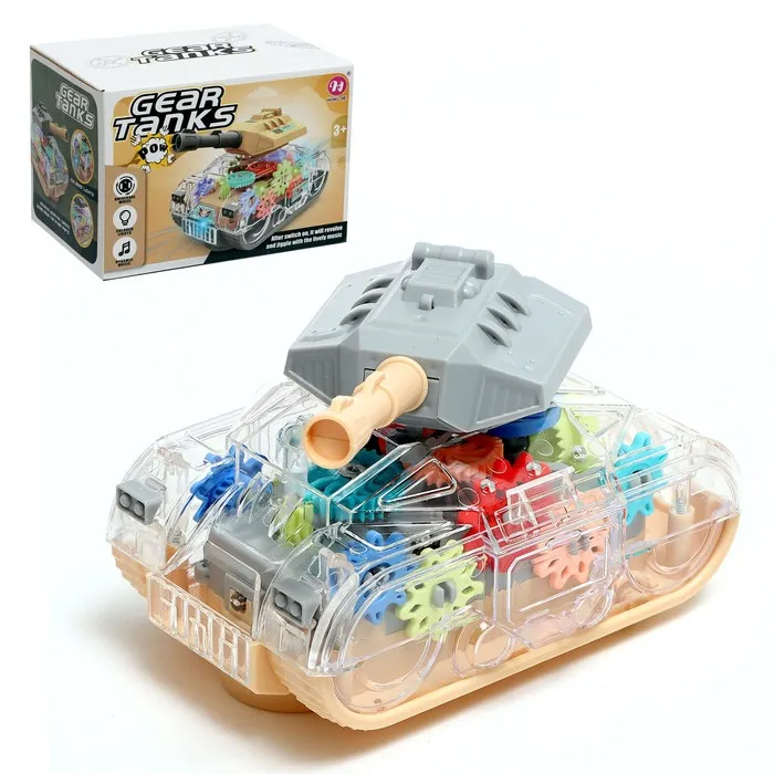 Танк «Шестерёнки», работает от батареек, свет и звук