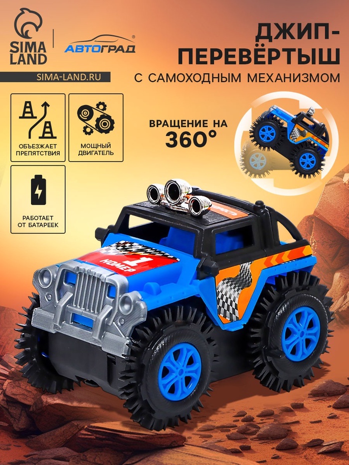 Джип-перевёртыш «Внедорожник», работает от батареек, цвет синий