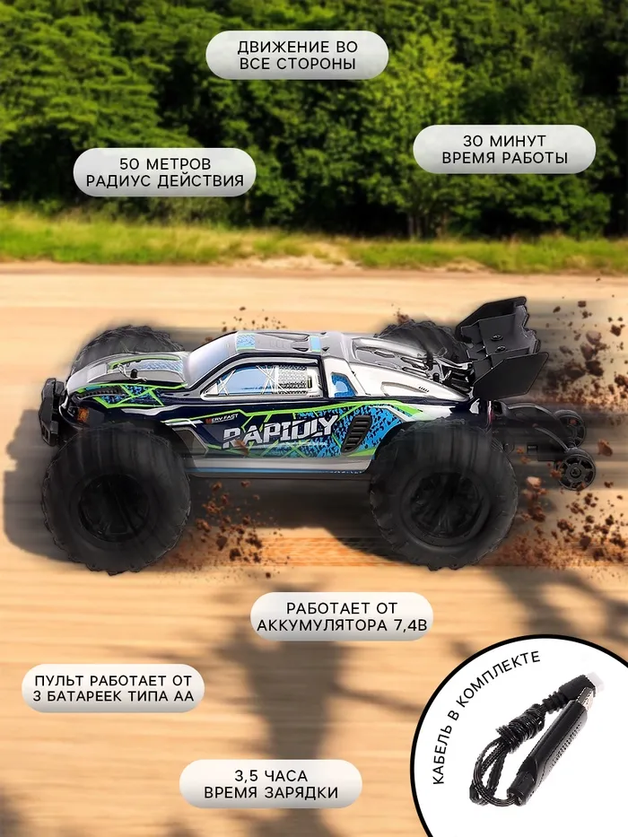 Машинка на пульте управления «Rock Ranger», радиоуправление, работает от аккумулятора, полный привод, свет, 1:16