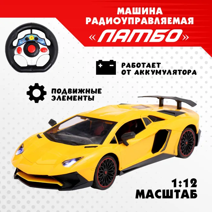 Машинка на пульте управления «Ламбо», радиоуправление, 1:12, открываются двери, работает от аккумулятора, цвет жёлтый