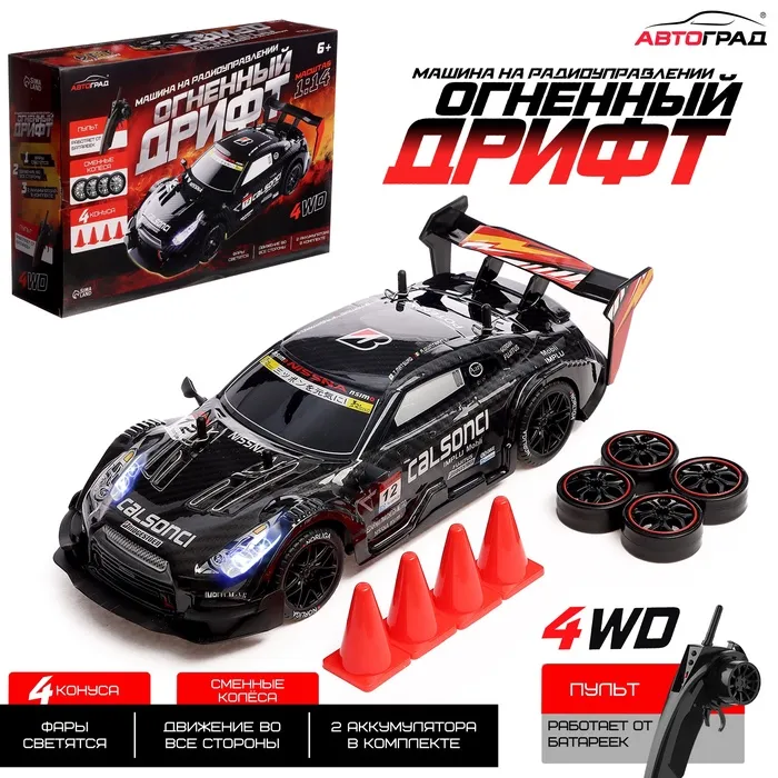 Машинка на пульте управления «Огненный Дрифт», радиоуправление, дрифт эффект, сменные колеса, работает от аккумулятора, цвет чёрный