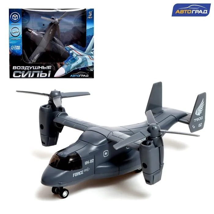 Вертолёт металлический «Воздушные силы», инерционный, световые и звуковые эффекты, цвет серый