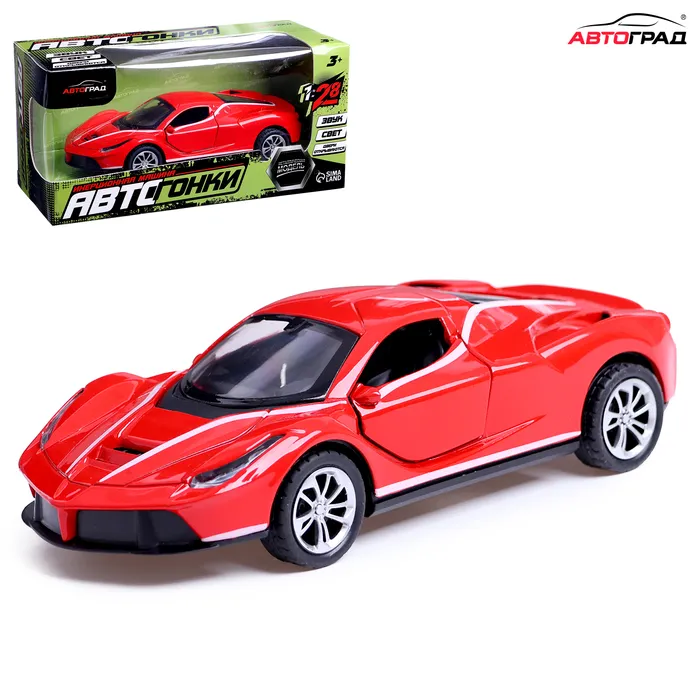 Машинка металлическая «Купе», 1:28, световые и звуковые эффекты, открываются двери, цвет красный