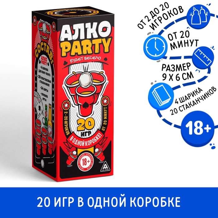 Настольная игра для взрослых «Алко Party», набор, 20 игр в одной коробке, 54 карты, 18+