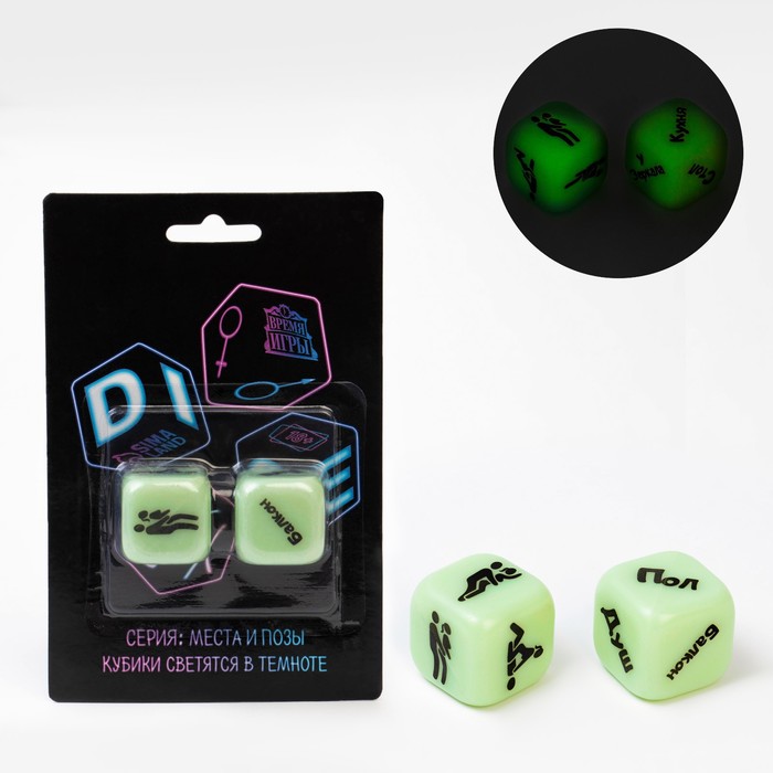 Кубики для пар «Ахи-вздохи. Время любви», 2 неоновых кубика, 18+