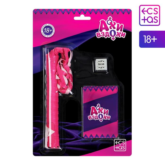 Набор эротический для двоих «Ахи-вздохи», 10 карт, плетка (цвет микс), 1 неоновый кубик, 18+