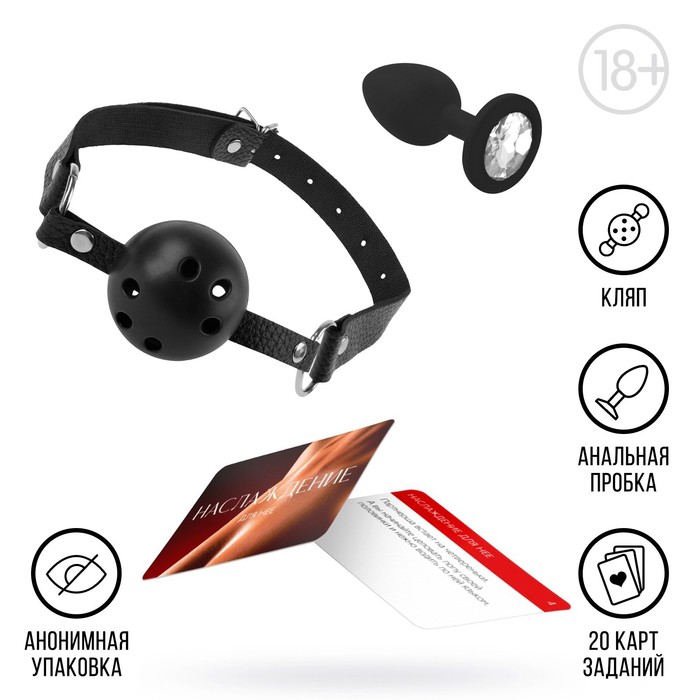 Секс-игра для двоих «Во власти страсти», 3 в 1 (20 карт, анальная пробка, кляп), 18+