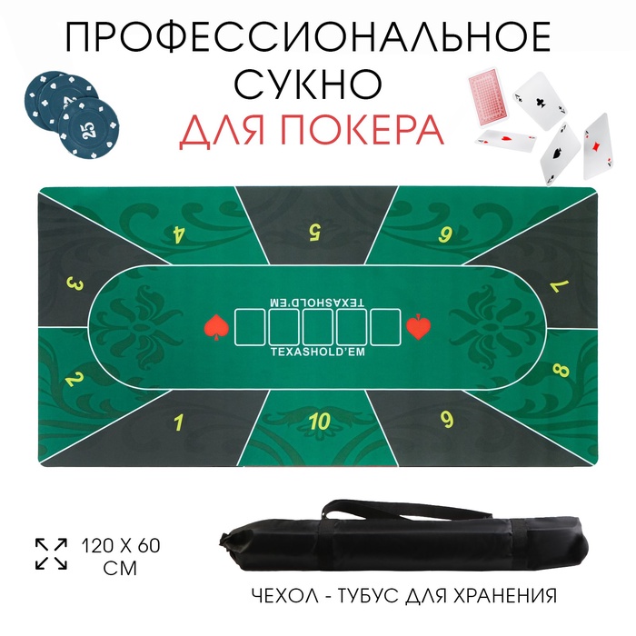 Сукно для покера, прорезиненное, 120×60 см, толщина 3 мм, зелёное