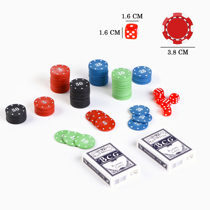 Покер «Время игры», набор для игры (200 фишек, 2 колоды карт, 5 кубиков)
