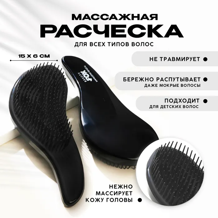 Массажная расчёска волна Beauty Fox, цвет чёрный, BEAUTY FOX