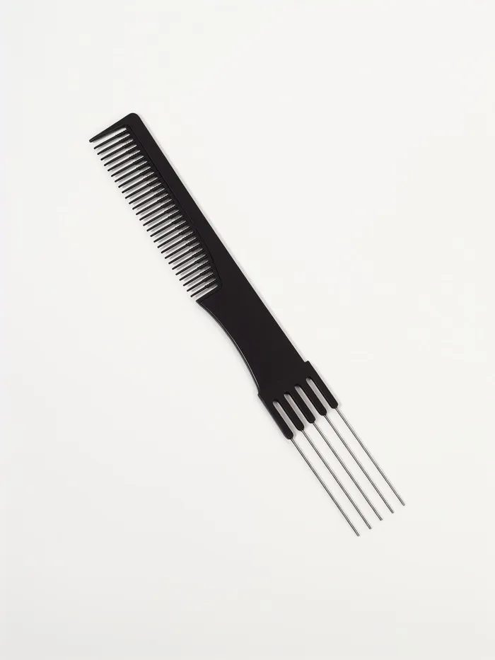 Расчёска для начёса с металлической вилкой, 20×2.7 см, чёрная