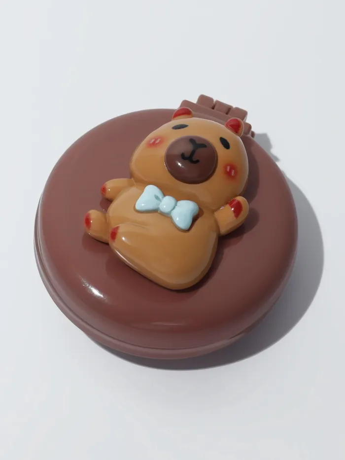 Расчёска массажная «Капибара», складная, с зеркалом, d=6.5 см, коричневая